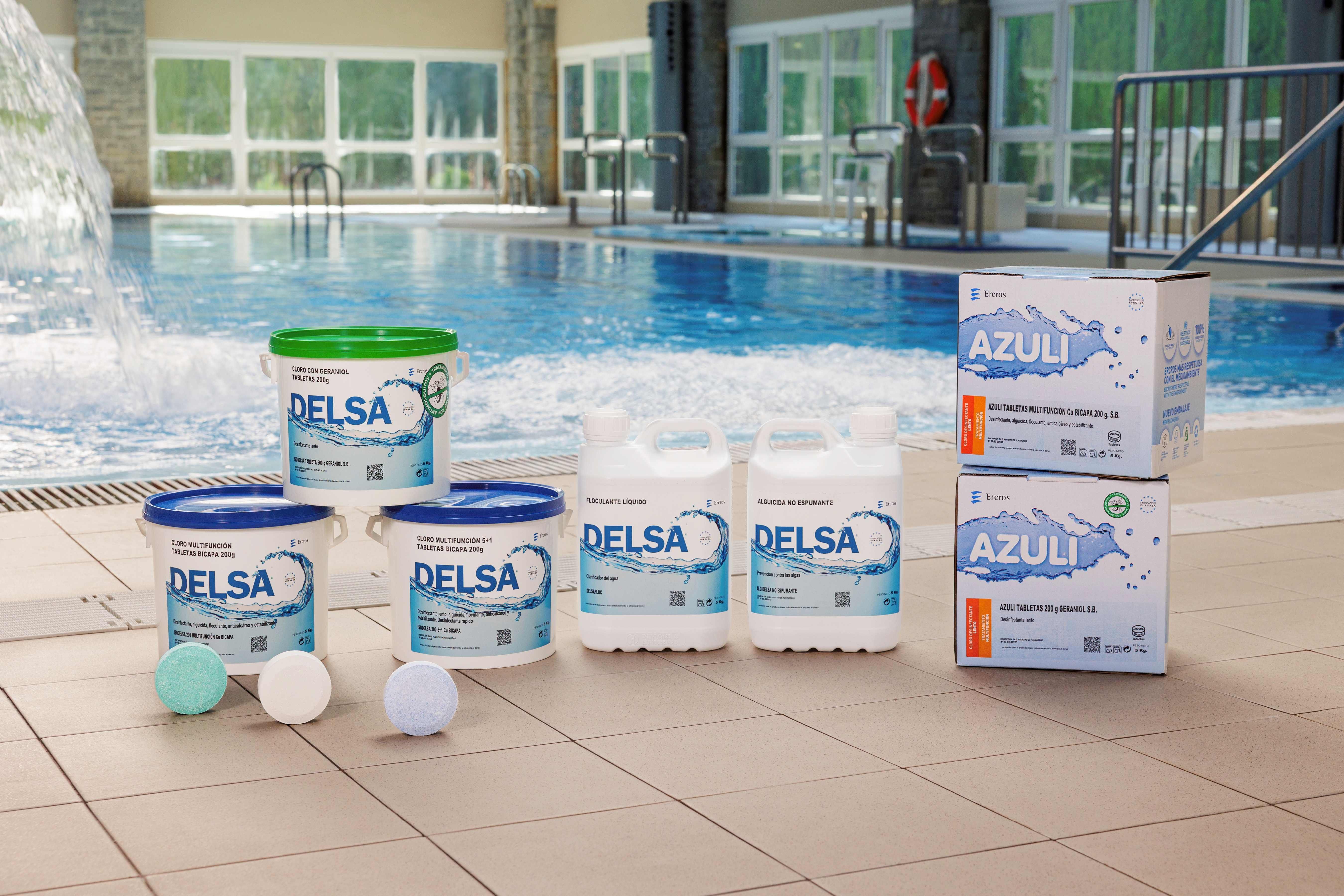 Ercros es líder europeo en la fabricación de tricloroisocianurato (ATCC) para la desinfección y el mantenimiento del agua de las piscinas, que comercializa a través de las marcas Delsa y Azuli en España y Portugal. La compañía también entrega este producto a clientes industriales que lo venden bajo sus propias marcas.